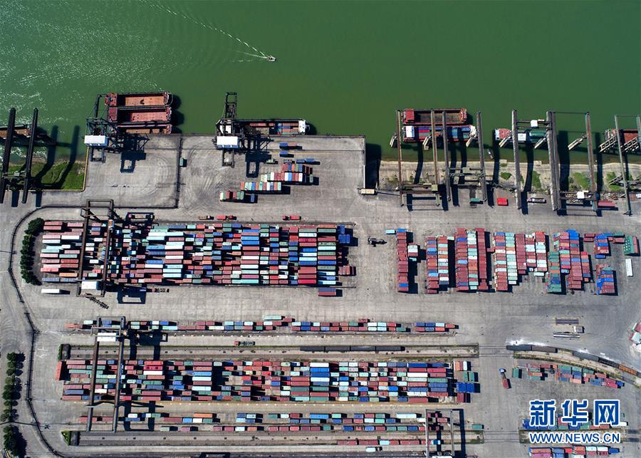 這是西江黃金水道上的貴港羅泊灣集裝箱碼頭(3月9日攝,無(wú)人機(jī)航拍)。  新華社記者 周華 攝