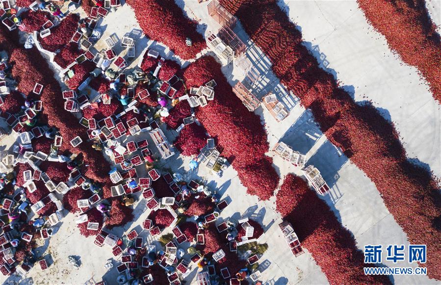 9月16日,阜城縣王集鄉(xiāng)南張莊村農(nóng)民在整理收獲的辣椒。近年來,河北省阜城縣王集鄉(xiāng)在推進產(chǎn)業(yè)富民過程中,積極引導農(nóng)民調(diào)整農(nóng)業(yè)產(chǎn)業(yè)結(jié)構(gòu),按照品種特色化、種植規(guī)?;?、產(chǎn)銷一體化的“公司+基地+農(nóng)戶”的經(jīng)營模式,鼓勵農(nóng)民發(fā)展特色辣椒種植,推行“訂單種植”模式,開辟出了一條農(nóng)民創(chuàng)收新路徑。目前,阜城縣王集鄉(xiāng)辣椒種植面積3100余畝,每畝年收益2500元以上,帶動當?shù)剞r(nóng)民實現(xiàn)增收。新華社記者朱旭東攝