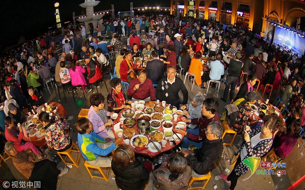 2018年9月23日,一場(chǎng)別開生面的迎中秋“百家宴”在山東省乳山市金鼎銀龍灣廣場(chǎng)舉行,來(lái)自周邊三個(gè)小區(qū)的800多名居民,攜自家的拿手好菜歡聚一堂,共敘鄰里情,喜迎中秋節(jié)。