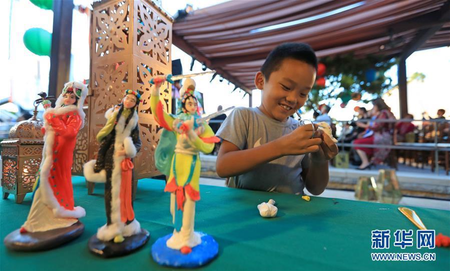 9月23日,在美國科斯塔梅薩南岸廣場,一名兒童在中秋游園會上學(xué)習(xí)捏面人。 美國西部最大購物中心南岸廣場23日晚舉辦游園會,慶祝中國傳統(tǒng)節(jié)日中秋節(jié)。 新華社記者李穎攝