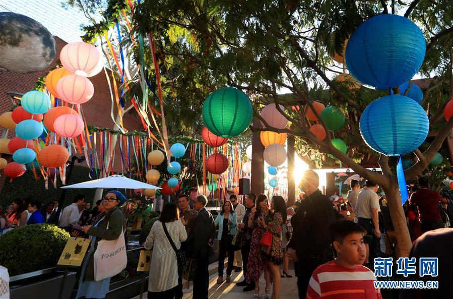 9月23日,在美國科斯塔梅薩南岸廣場,人們參加中秋游園會。 美國西部最大購物中心南岸廣場23日晚舉辦游園會,慶祝中國傳統(tǒng)節(jié)日中秋節(jié)。 新華社記者李穎攝