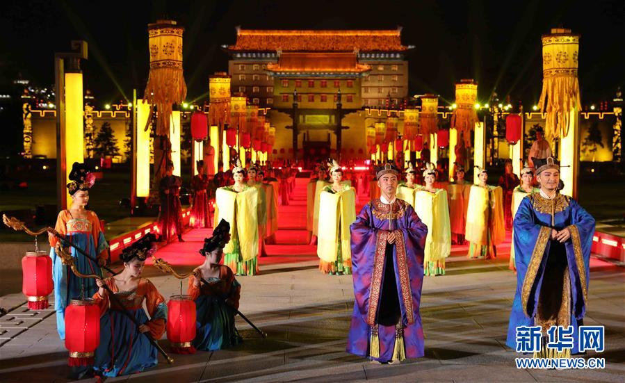 演員在表演《夢(mèng)長(zhǎng)安——大唐迎賓盛禮》(9月23日攝)。