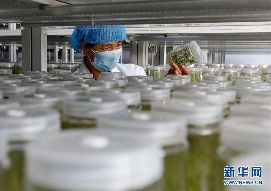 9月23日,張北縣小二臺鎮(zhèn)一家馬鈴薯育種中心的技術(shù)員在培育室查看薯苗長勢。 近年來,地處壩上地區(qū)的河北省張北縣因地制宜,積極推進(jìn)馬鈴薯產(chǎn)業(yè)化發(fā)展,形成了馬鈴薯繁種育種、商品薯種植、倉儲、加工為一體的產(chǎn)業(yè)鏈,帶動(dòng)農(nóng)民增收致富。 新華社記者楊世堯攝