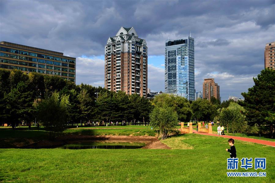 9月25日,一名小朋友在湘江公園的草地上玩耍。 當日,哈爾濱市湘江公園正式開園迎客。這個集休閑、健身、娛樂、觀賞于一體的多功能都市公園由高爾夫球場改造而成,免費對市民和游客開放。 新華社記者 王建威 攝