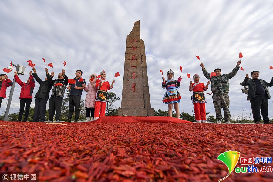浙江龍泉山喜獲豐收 8噸辣椒拼巨型國(guó)旗