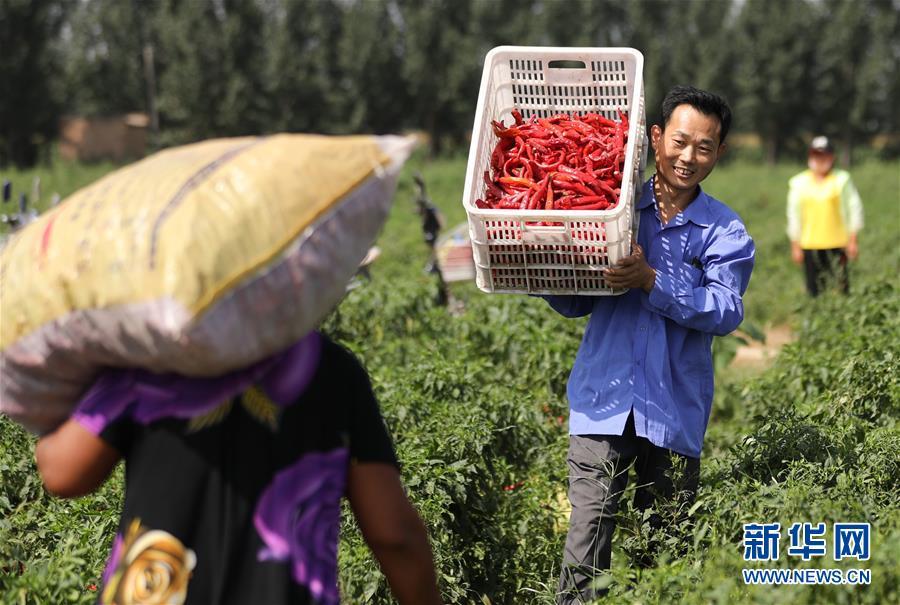 9月16日,阜城縣王集鄉(xiāng)南張莊村農(nóng)民在搬運(yùn)采摘的辣椒。近年來(lái),河北省阜城縣王集鄉(xiāng)在推進(jìn)產(chǎn)業(yè)富民過(guò)程中,積極引導(dǎo)農(nóng)民調(diào)整農(nóng)業(yè)產(chǎn)業(yè)結(jié)構(gòu),按照品種特色化、種植規(guī)模化、產(chǎn)銷(xiāo)一體化的“公司+基地+農(nóng)戶”的經(jīng)營(yíng)模式,鼓勵(lì)農(nóng)民發(fā)展特色辣椒種植,推行“訂單種植”模式,開(kāi)辟出了一條農(nóng)民創(chuàng)收新路徑。目前,阜城縣王集鄉(xiāng)辣椒種植面積3100余畝,每畝年收益2500元以上,帶動(dòng)當(dāng)?shù)剞r(nóng)民實(shí)現(xiàn)增收。新華社記者朱旭東攝