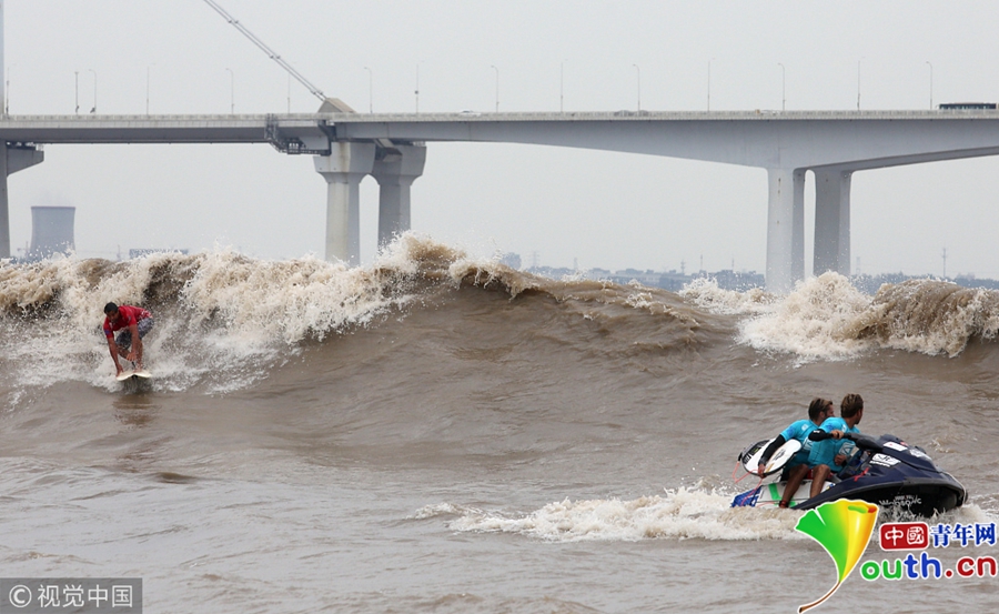 杭州:高手聚集錢塘江 上演沖浪對決