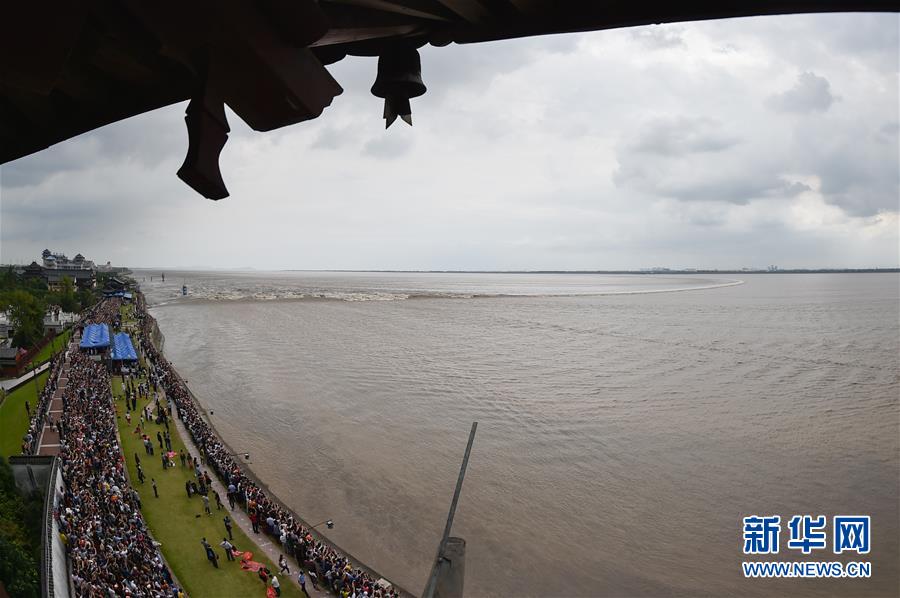 9月27日,人們在浙江海寧市鹽官鎮(zhèn)觀看錢塘江大潮。當日是農(nóng)歷八月十八,號稱“天下第一潮”的錢塘江大潮洶涌而來,眾多錢塘江沿岸居民和游客爭睹其壯觀景象。新華社記者 黃宗治 攝