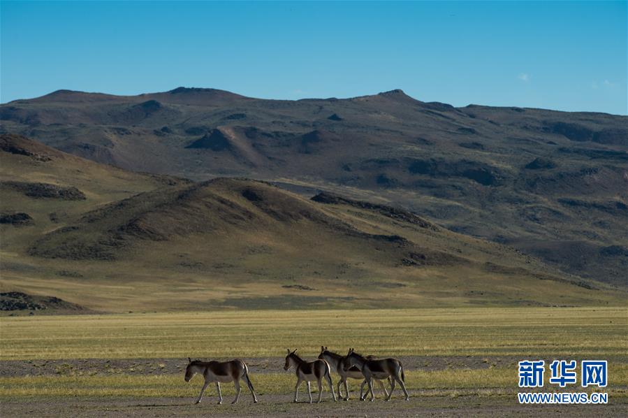 在西藏阿里地區(qū)境內(nèi)拍攝的國家一級保護(hù)動物藏野驢(9月8日攝)。 阿里地處西藏西部,平均海拔4500米以上,面積30多萬平方公里,羌塘國家級自然保護(hù)區(qū)幾乎涵蓋整個(gè)阿里地區(qū),是眾多野生動物生活的樂園。 新華社記者 普布扎西 攝