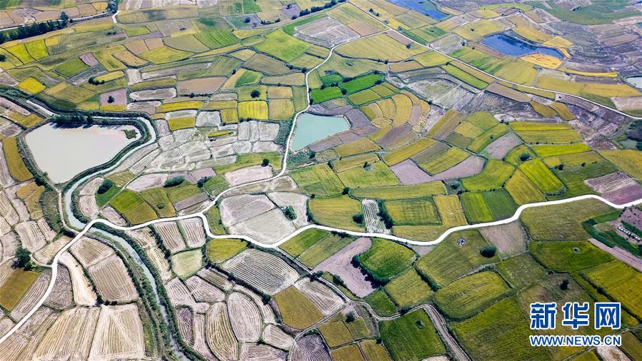 這是9月28日無人機拍攝的小崗村稻田。新華社記者 才揚攝