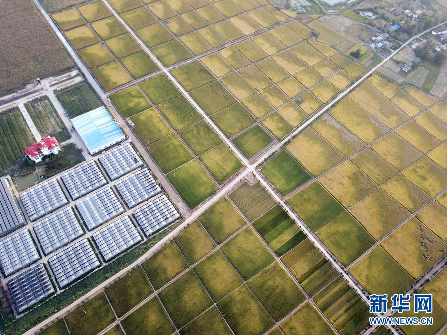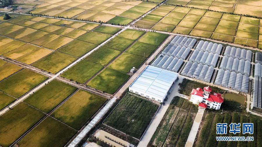 這是北大荒集團在小崗村建立的現(xiàn)代化水稻生產(chǎn)基地(9月27日無人機拍攝)。 新華社記者 張端攝