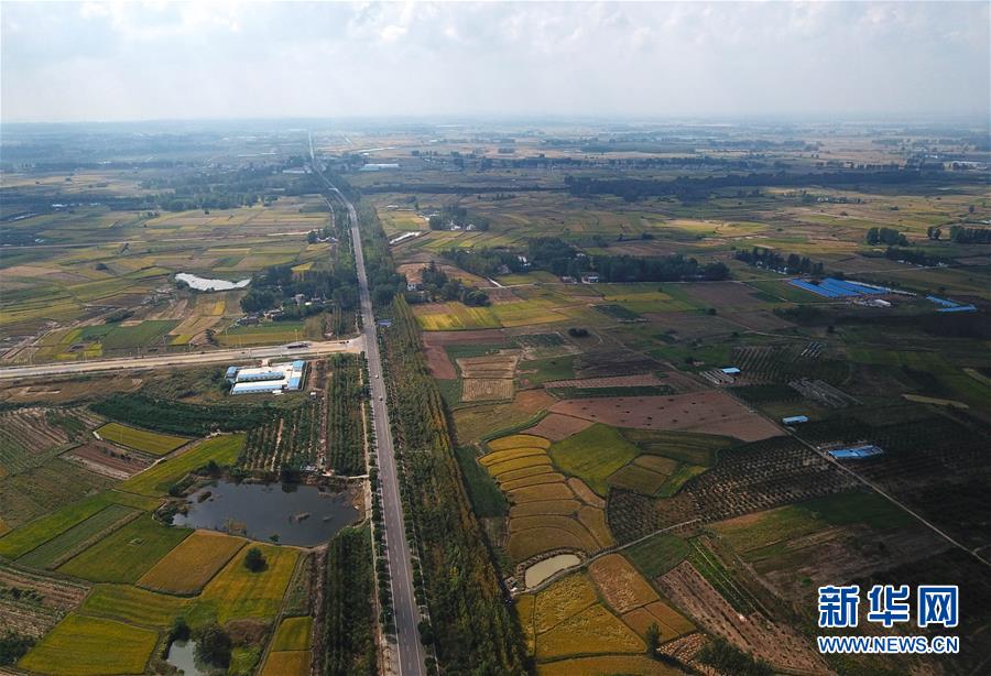 這是安徽鳳陽小崗村友誼大道(9月27日無人機拍攝)。 新華社記者 張端攝