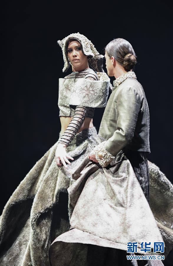9月28日,在新西蘭首都惠靈頓,模特展示入圍作品。新華社記者郭磊攝