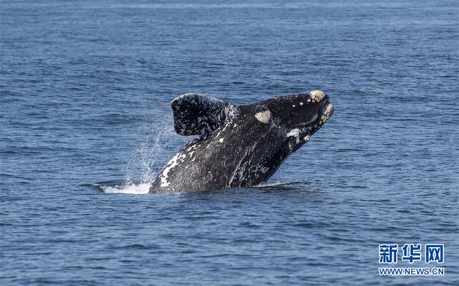 9月30日,在南非赫曼紐斯小鎮(zhèn)附近海面上,一頭南露脊鯨躍出海面。9月29日,位于開(kāi)普敦以東約115公里的赫曼紐斯小鎮(zhèn)迎來(lái)2018年的鯨魚節(jié),來(lái)自世界各地的游客可乘船出海觀鯨,也可在岸邊等待鯨魚的到來(lái)。新華社記者陳誠(chéng)攝