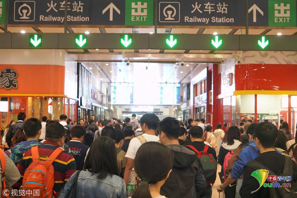 2018年10月1日,江蘇淮安,國(guó)慶長(zhǎng)假首日淮安汽車總站迎來客流高峰,出行的旅客絡(luò)繹不絕。圖片作者:張照久
