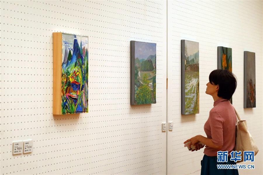 10月8日,在日本東京世田谷美術(shù)館,一位觀眾欣賞展出的中國藝術(shù)家畫作。 “現(xiàn)代中國藝術(shù)東京展”8日在日本東京世田谷美術(shù)館開幕。本次展覽共展出當(dāng)代中國美術(shù)界具有代表性的30余幅畫作。 新華社記者王可佳攝