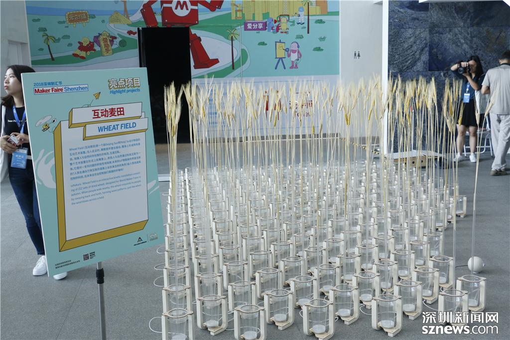 場館內(nèi)設(shè)計的互動麥田項目,當(dāng)人走進(jìn)時,棵棵麥稈便會搖動,整體形成陣陣麥浪
