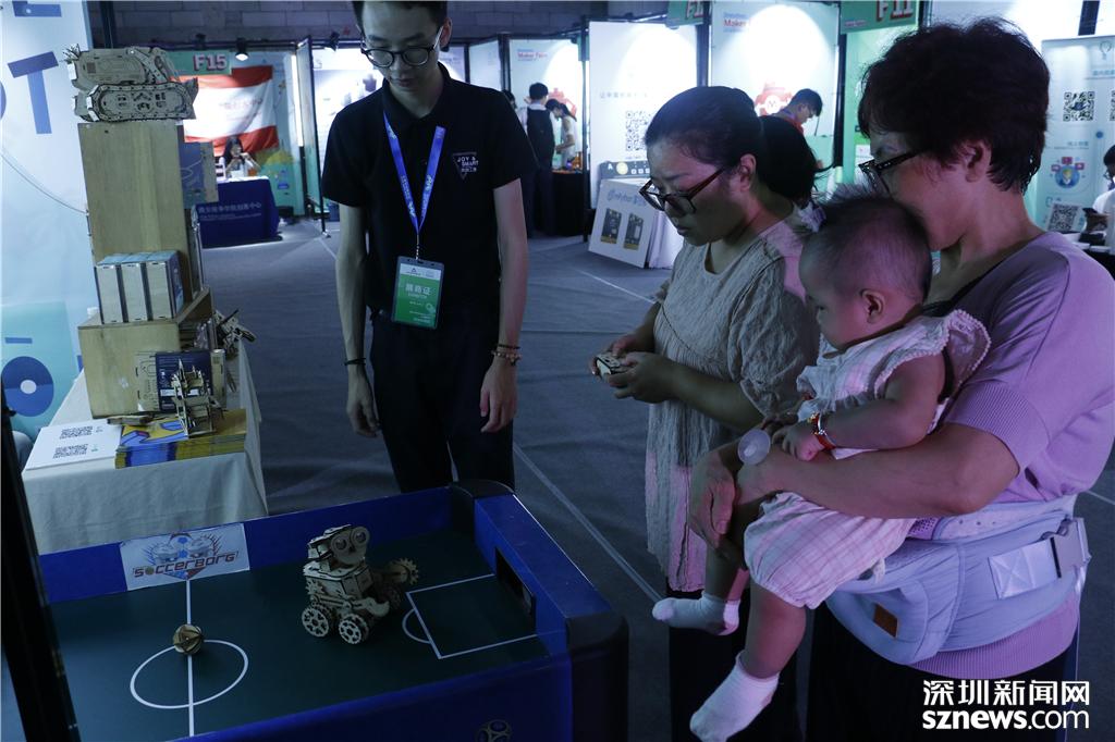 F16玩創(chuàng)工房展位前,市民體驗操作機(jī)器人
