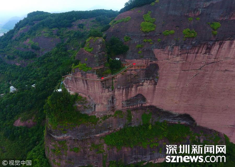 浙江金華武義懸崖峭壁造景觀 驚險(xiǎn)玻璃棧道掛高空