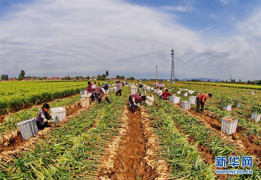 10月9日,秦皇島市撫寧區(qū)留守營(yíng)鎮(zhèn)桑園村農(nóng)民在收獲生姜。 近年來,河北省秦皇島市撫寧區(qū)在農(nóng)業(yè)結(jié)構(gòu)調(diào)整過程中,引導(dǎo)當(dāng)?shù)剞r(nóng)民種植優(yōu)質(zhì)無公害生姜,并安排農(nóng)業(yè)技術(shù)員定期到田間指導(dǎo)農(nóng)民對(duì)生姜進(jìn)行標(biāo)準(zhǔn)化管理。據(jù)介紹,今年該縣生姜種植面積1萬多畝,預(yù)計(jì)產(chǎn)生姜5萬噸,種植戶每畝純收入達(dá)1萬多元。 新華社記者 楊世堯 攝