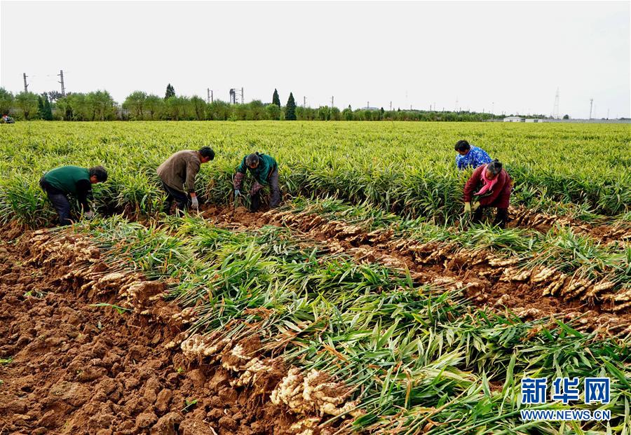 10月9日,秦皇島市撫寧區(qū)留守營鎮(zhèn)桑園村農(nóng)民在收獲生姜。 近年來,河北省秦皇島市撫寧區(qū)在農(nóng)業(yè)結(jié)構(gòu)調(diào)整過程中,引導(dǎo)當(dāng)?shù)剞r(nóng)民種植優(yōu)質(zhì)無公害生姜,并安排農(nóng)業(yè)技術(shù)員定期到田間指導(dǎo)農(nóng)民對生姜進(jìn)行標(biāo)準(zhǔn)化管理。據(jù)介紹,今年該縣生姜種植面積1萬多畝,預(yù)計產(chǎn)生姜5萬噸,種植戶每畝純收入達(dá)1萬多元。 新華社記者 楊世堯 攝