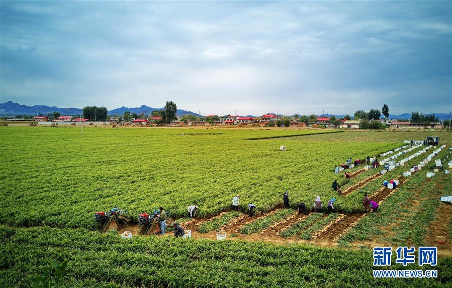 10月9日,秦皇島市撫寧區(qū)留守營鎮(zhèn)桑園村農(nóng)民在收獲生姜(無人機拍攝)。 近年來,河北省秦皇島市撫寧區(qū)在農(nóng)業(yè)結(jié)構(gòu)調(diào)整過程中,引導(dǎo)當(dāng)?shù)剞r(nóng)民種植優(yōu)質(zhì)無公害生姜,并安排農(nóng)業(yè)技術(shù)員定期到田間指導(dǎo)農(nóng)民對生姜進(jìn)行標(biāo)準(zhǔn)化管理。據(jù)介紹,今年該縣生姜種植面積1萬多畝,預(yù)計產(chǎn)生姜5萬噸,種植戶每畝純收入達(dá)1萬多元。 新華社記者 楊世堯 攝
