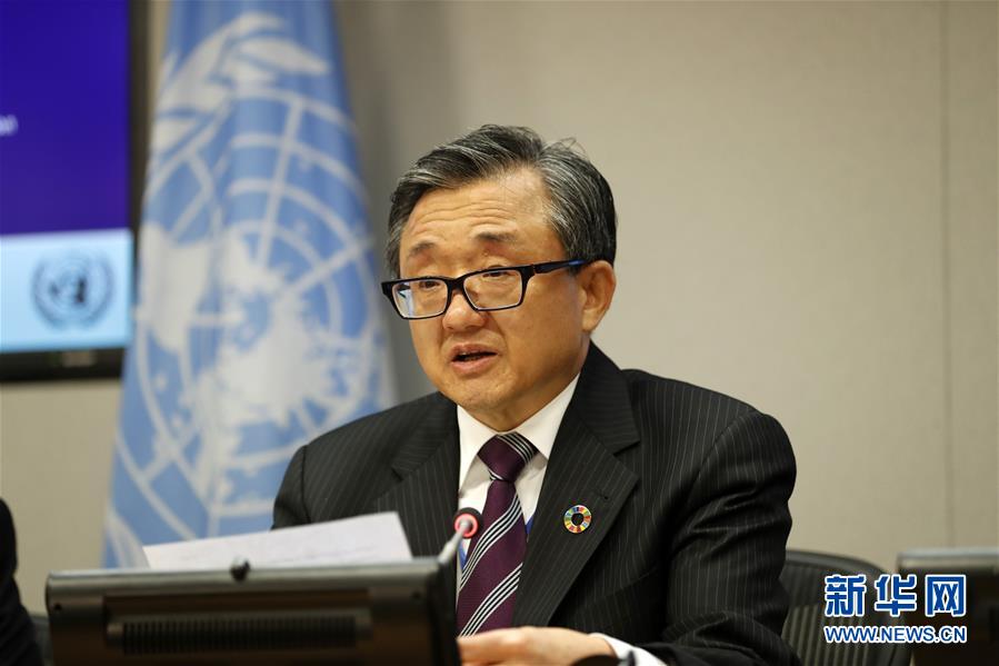 10月8日,在位于紐約的聯(lián)合國總部,聯(lián)合國負責(zé)經(jīng)濟和社會事務(wù)的副秘書長劉振民向記者介紹《2018年世界經(jīng)濟和社會概覽》。新華社記者李木子攝