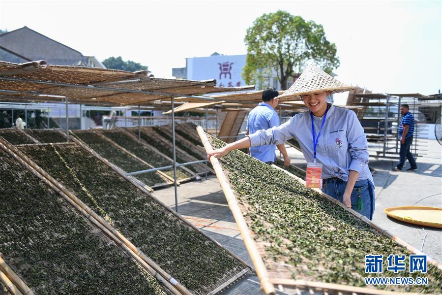 10月9日,參賽選手用手感應(yīng)日光溫度判斷茶葉萎凋品質(zhì)。