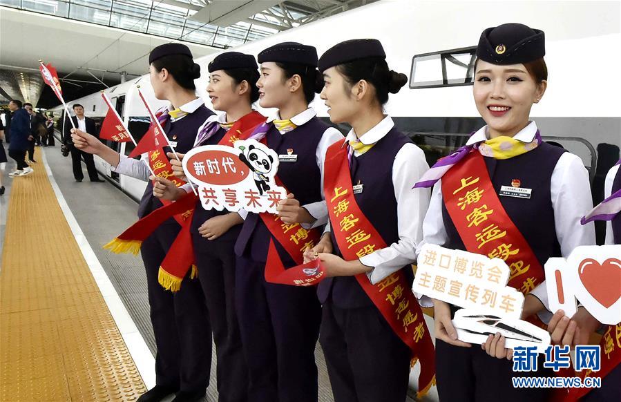 當日,首列復興號“進口博覽會主題宣傳列車”從上海虹橋站發(fā)車。這輛滿載著此次盛會“知識點”和“信息量”的高鐵列車,將在京滬高鐵線上運行,成為進口博覽會的“流動宣傳窗”。