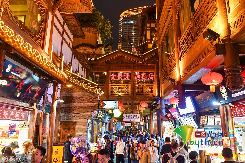 重慶網(wǎng)紅景點(diǎn)游人如織 洪崖洞夜景輝煌