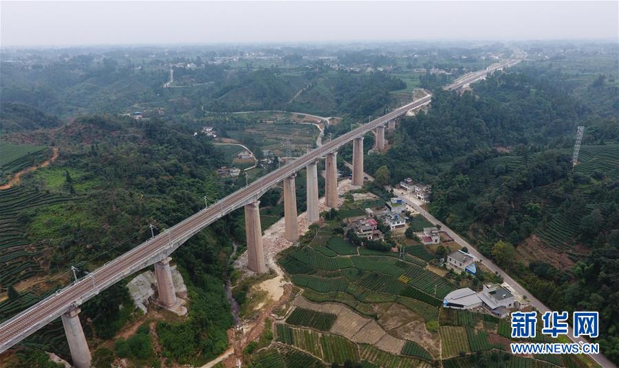 這是10月11日無人機(jī)拍攝的川藏鐵路成雅段一座鐵路橋。新華社記者薛玉斌攝