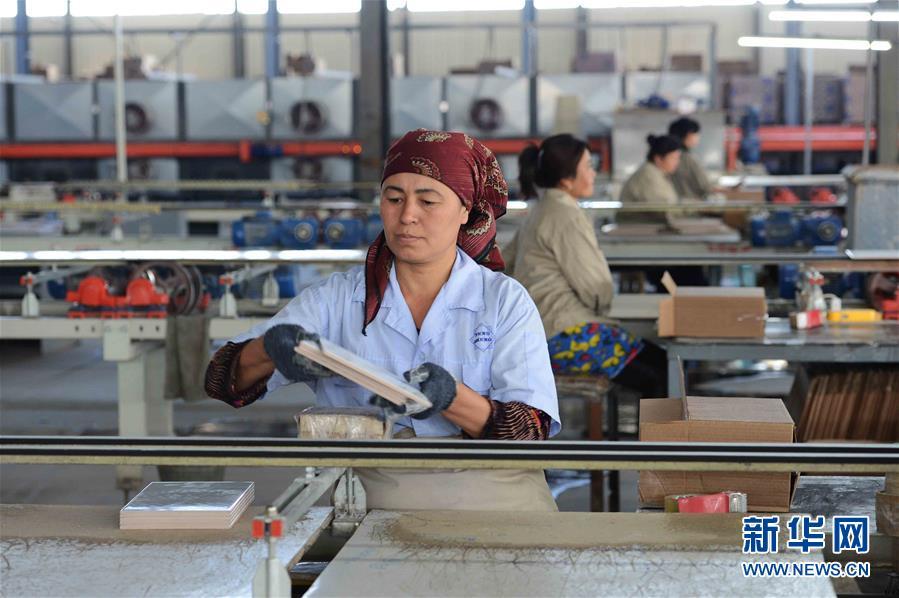 2017年5月1日,工人在位于烏茲別克斯坦錫爾河州的鵬盛工業(yè)園區(qū)瓷磚生產(chǎn)車間工作。鵬盛工業(yè)園是中國(guó)民營(yíng)企業(yè)直接在烏投資建立的首個(gè)中烏合資工業(yè)園區(qū)。