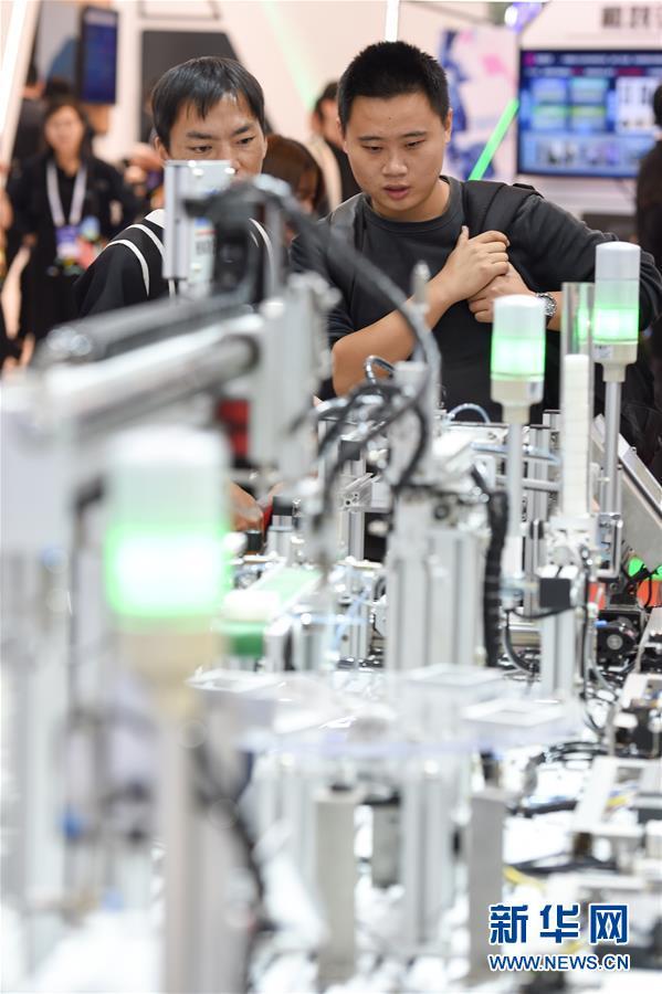 10月11日,觀眾在博覽會現(xiàn)場觀看模塊化自動生產(chǎn)線。 當(dāng)日,2018世界智能制造大會·智領(lǐng)全球博覽會在南京國際博覽中心開展。本次博覽會以“賦能升級,智造未來”為主題,總展示面積約5萬平方米,共有1900多家國內(nèi)外企業(yè)參會參展。博覽會將展示國內(nèi)外智能制造領(lǐng)域的最新技術(shù)和頂尖產(chǎn)品,發(fā)布國內(nèi)智能制造示范企業(yè)的最新發(fā)展成果,同時分享智能制造實際應(yīng)用方面最前沿的解決方案。 新華社記者李博攝
