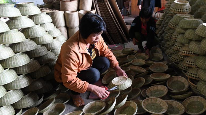 10月14日,河北省南和縣閆里鄉(xiāng)閆里村農民在晾曬收獲的玉米(無人機拍攝)。