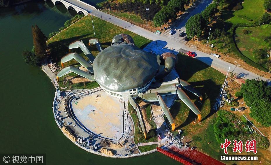 據(jù)了解,這是建造中的大閘蟹生態(tài)館,預(yù)計未來將在大閘蟹的白肚內(nèi)容納三層空間,集休閑、娛樂,以及有關(guān)大閘蟹體驗于一體的設(shè)施。圖片來源:視覺中國