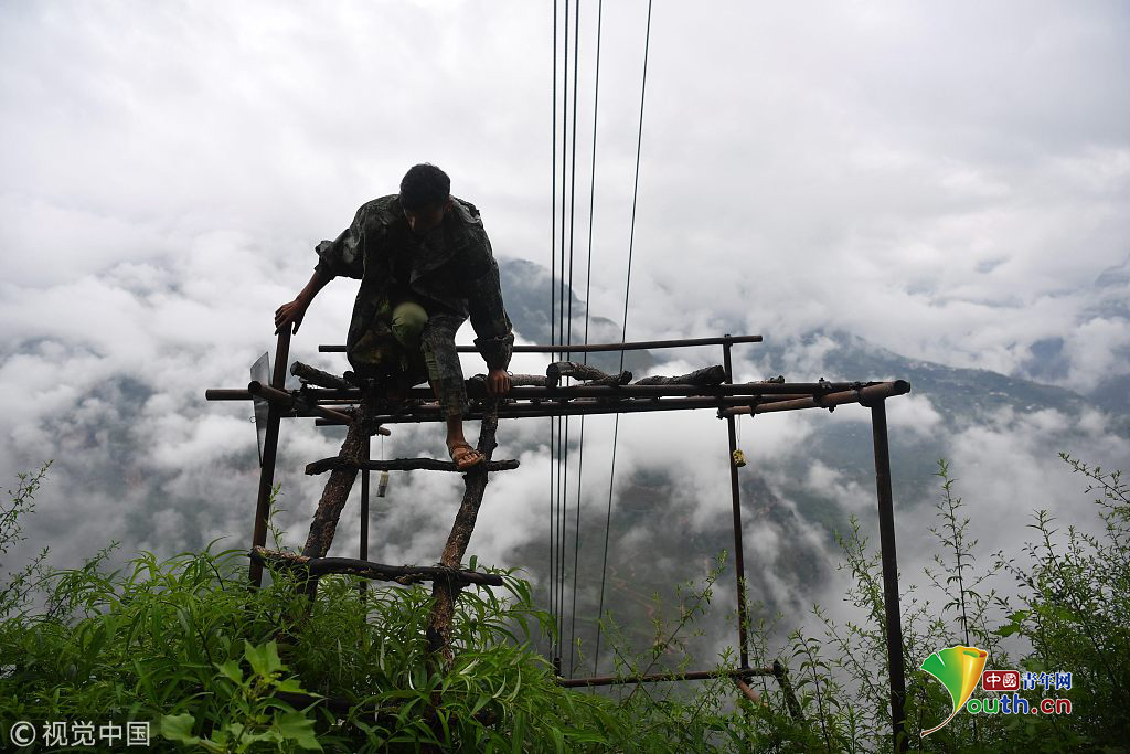 2018年8月3日,四川涼山懸崖村貨運(yùn)索道。上山一趟只要幾十分鐘。片作者:莫曉