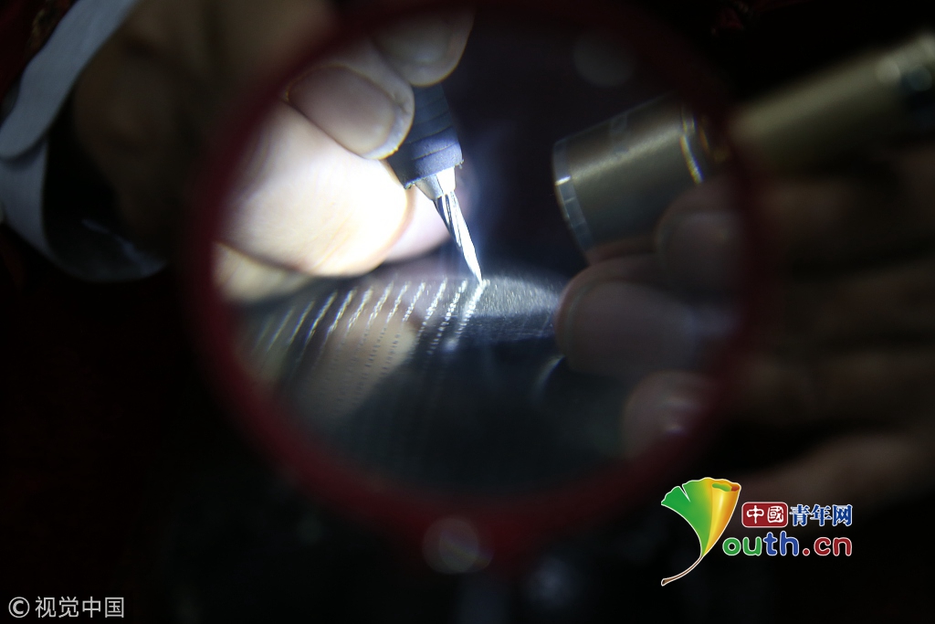 濟(jì)南一大爺黑陶鼎上刻字 1個字不到1毫米需用放大鏡看