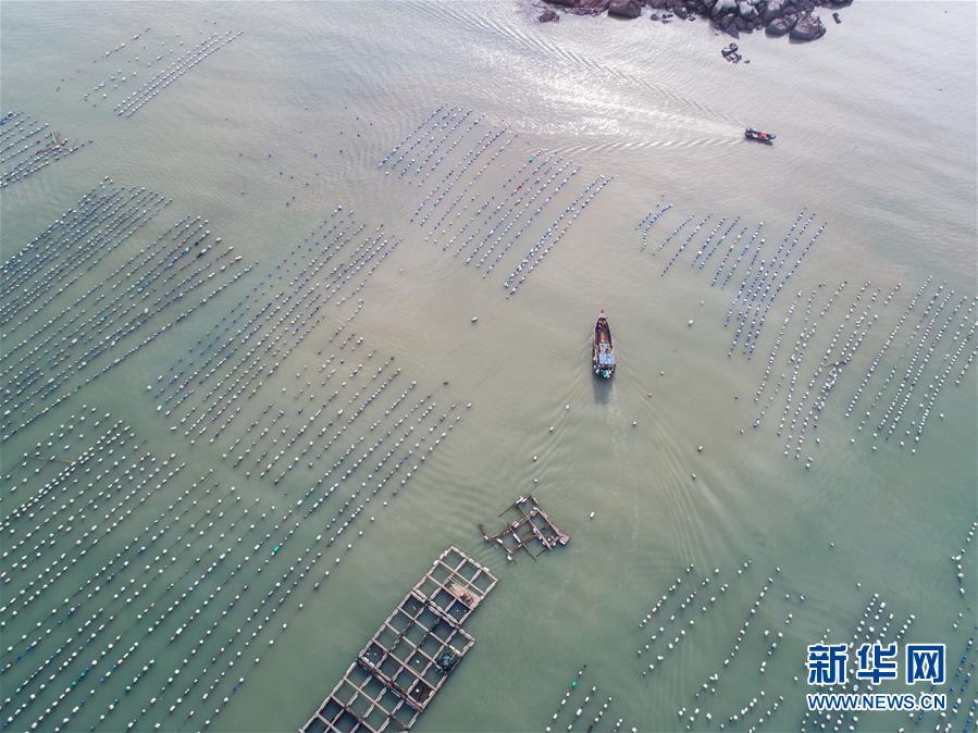 8月19日,空中俯瞰南麂島海域內(nèi)的“海上牧場”養(yǎng)殖區(qū)(無人機(jī)拍攝)。進(jìn)入8月,浙江省溫州市平陽縣南麂鎮(zhèn)海域上大片的大黃魚、貽貝等特色海產(chǎn)品養(yǎng)殖區(qū)域迎來豐收季節(jié),養(yǎng)殖戶們駕駛漁船在養(yǎng)殖區(qū)海域進(jìn)行打撈收獲,在碧海藍(lán)天下構(gòu)成了一幅“海上牧場”的美麗豐收景象。近年來,南麂鎮(zhèn)政府引導(dǎo)漁民養(yǎng)殖戶充分發(fā)揮“靠海吃?!钡馁Y源優(yōu)勢,大力發(fā)展海洋養(yǎng)殖經(jīng)濟(jì)和海島旅游經(jīng)濟(jì),實(shí)現(xiàn)了南麂由“生態(tài)美”向“產(chǎn)業(yè)美”,“產(chǎn)業(yè)美”向“經(jīng)濟(jì)美”的轉(zhuǎn)變。同時該鎮(zhèn)堅持以大黃魚、貽貝等為特色產(chǎn)業(yè)支撐,精準(zhǔn)發(fā)展高效海洋養(yǎng)殖業(yè),重點(diǎn)培養(yǎng)一批新型職業(yè)漁民,依靠專業(yè)技術(shù)支持,實(shí)現(xiàn)深海仿生養(yǎng)殖,讓好生態(tài)造就好品質(zhì),重點(diǎn)打造南麂養(yǎng)殖品牌,組建營銷網(wǎng)絡(luò),拓展特色海產(chǎn)品市場。新華社記者 徐昱攝