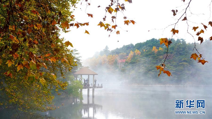 游客在九江市廬山風景區(qū)內(nèi)的如琴湖旁參觀游玩(10月20日攝)?!⌒氯A社記者 胡晨歡 攝