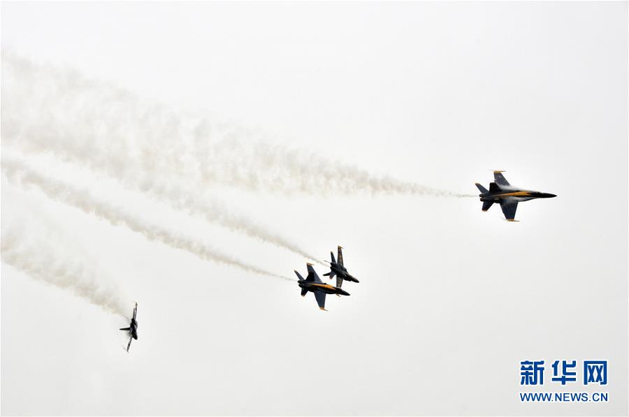10月20日,在美國休斯敦,美國海軍“藍天使”飛行表演隊進行飛行表演。 新華社記者劉立偉攝
