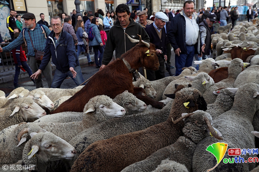 西班牙牧羊人驅趕羊群穿越馬德里 羊群進城“參觀”