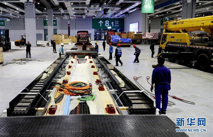 10月22日,“金牛座”龍門銑床床身(前)等待裝運(yùn)。 當(dāng)日,來自德國的首屆進(jìn)口博覽會最大展品——“金牛座”龍門銑床完成初步組裝,將運(yùn)往國家會展中心(上海)3號館進(jìn)行最后的安裝施工。這是德國瓦德里??票す狙邪l(fā)的機(jī)床設(shè)備,高約8米,占地面積約200平方米,將在智能及高端裝備區(qū)進(jìn)行展出。 新華社記者方喆攝