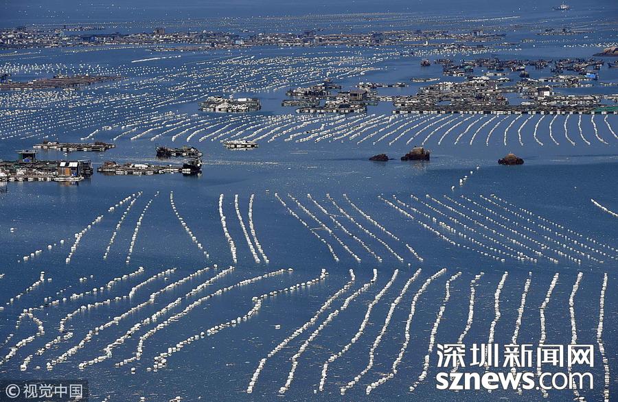 深圳新聞網(wǎng)訊 2018年10月26日,在福建連江海域上,“海上田園”網(wǎng)箱羅列,漁排上搭建的木屋錯(cuò)落成“戶”,蔚為壯觀,成為一道獨(dú)特的風(fēng)景線。福建省連江縣是中國(guó)鮑魚(yú)養(yǎng)殖第一大縣。