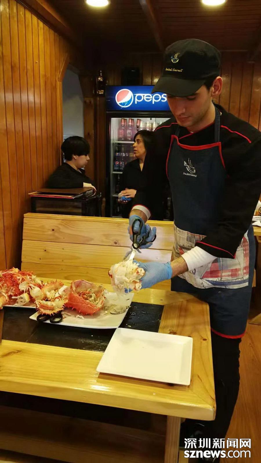 深圳新聞網(wǎng)訊 蜘蛛蟹(又名皇帝蟹)只產(chǎn)于南北兩極冰冷的海洋中,因為八條腿特長,外觀形似蜘蛛,而且觸角也比普通螃蟹多,所以被稱為蜘蛛蟹,大個的重量可達5公斤以上。智利政府規(guī)定,小于1.5公斤的不許捕撈。