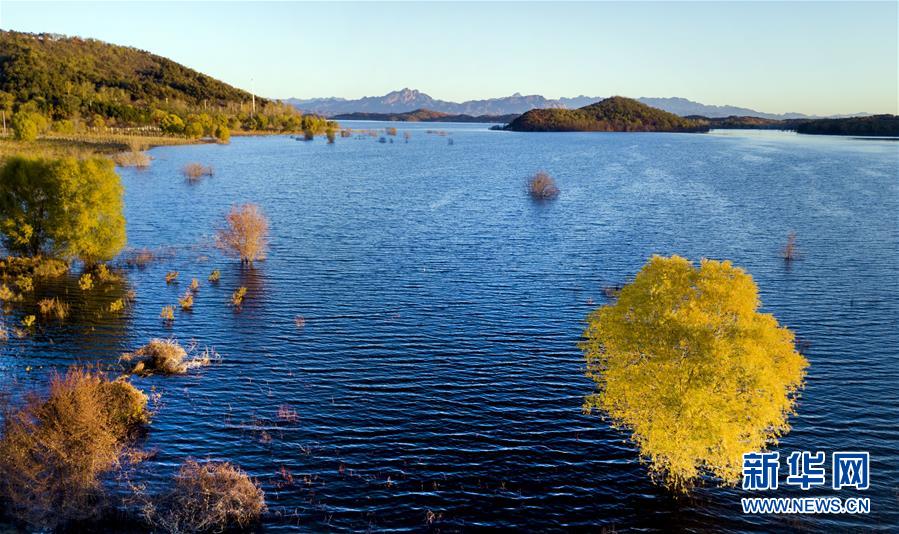 金秋時節(jié),北京密云水庫沿岸樹林逐漸變黃,山水相映,恬淡寧靜。 新華社記者陶明攝
