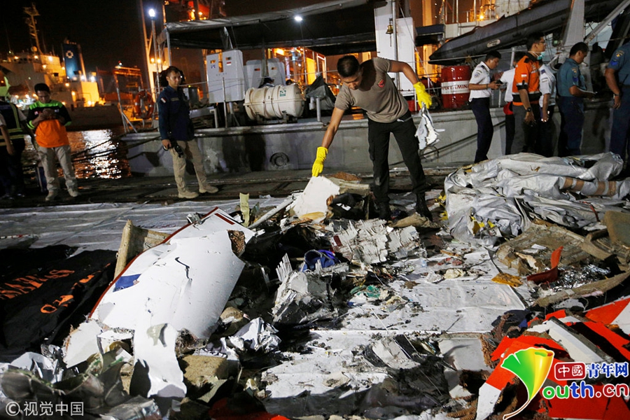目前印尼搜救人員正潛入水中,打撈飛機(jī)的主要?dú)埡 ?/p>