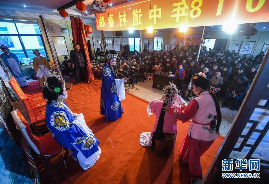 2018年2月6日,長興風(fēng)華藝術(shù)團(tuán)的演員們?yōu)楹闃蜴?zhèn)中道村的村民們演出越劇。據(jù)了解,長興縣每年都會(huì)安排100多場(chǎng)“送戲下鄉(xiāng)”活動(dòng),滿足村民的精神文化需求。新華社記者 徐昱 攝