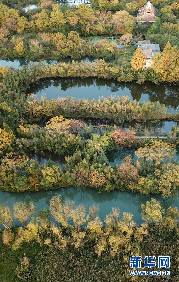 這是10月29日無人機(jī)拍攝的西溪濕地。 新華社記者翁忻旸攝
