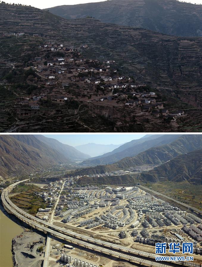 這是一張拼版照片。上圖為隴南市武都區(qū)坪埡藏族鄉(xiāng)腰道村全景(2016年9月1日攝);下圖為隴南市武都區(qū)的“新坪埡”全景(10月31日無人機(jī)拍攝)。歷經(jīng)3年多的建設(shè),在甘肅省隴南市武都區(qū)白龍江畔,一個(gè)嶄新的“新坪埡”即將建成,預(yù)計(jì)今年年底實(shí)現(xiàn)全面建成搬遷。 坪埡藏族鄉(xiāng)是甘肅省隴南市25個(gè)特困片區(qū)鄉(xiāng)鎮(zhèn)之一,2015年,當(dāng)?shù)卣龀銎簣翰刈遴l(xiāng)易地扶貧搬遷重大決策,對(duì)深山上的8個(gè)村1236戶5731人實(shí)施易地扶貧搬遷,總投資4.69億元,是甘肅省“十三五”時(shí)期易地扶貧搬遷工程重點(diǎn)建設(shè)項(xiàng)目。 全面建成搬遷后,當(dāng)?shù)卣畬?duì)搬遷安置區(qū)與周邊景區(qū)進(jìn)行整體規(guī)劃,打造民族風(fēng)情和鄉(xiāng)村生態(tài)旅游村;同時(shí)加大群眾專業(yè)技能培訓(xùn),并引進(jìn)企業(yè)實(shí)現(xiàn)群眾本地就業(yè),幫助搬遷群眾增收致富。新華社記者 范培珅攝