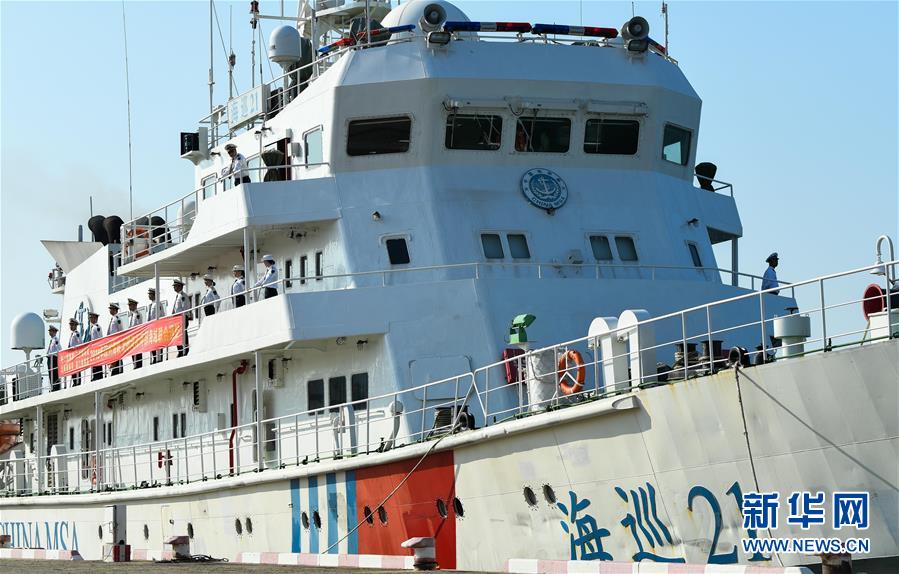 11月3日,“海巡21”輪準備出發(fā)。當日,隨著“海巡21”輪緩緩駛離??诤J卤O(jiān)管基地碼頭,由瓊桂粵海事部門共同開展的瓊州海峽、北部灣及環(huán)海南島水域跨轄區(qū)聯(lián)合巡航執(zhí)法活動揭開序幕。新華社記者楊冠宇攝